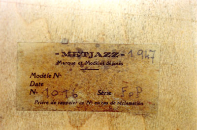 "Metjazz" was the trade name of Jean Metzger. He worked with the well known "Paul Beuscher" instrument factory and distributor in Paris and later opened his own business in Paris, where a lot of the leading jazz musicians at that time came to pick their instruments. | ||